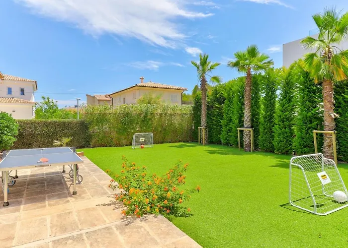 De luchthaven Palma de Mallorca is binnen 52 minuten rijden te bereiken en natuurattracties zoals het Hidropark liggen binnen ongeveer 15-minuten autorit. In de omgeving vind je winkelgelegenheden zoals oude binnenstad van Alcudia, op circa 15 minuten rijden. De 5-badkamer villa bevindt zich op ongeveer 15-minuten rijafstand van Iglesia San Jaume en is een populaire bestemming voor zowel gelovigen als toeristen.